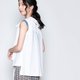 ▪布料实体颜色接近下图▼▼,雪纺面料为正白,底身微抗皱衬衫布料是稍浅的白色,造型大领设计使用条纹触感柔软布料,纯白中带点小巧思。