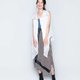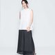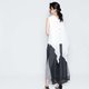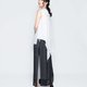 背部线条以2:3深浅材质搭法营造不过度沈重的轻盈感,前短后长,两侧微开衩,修饰臀型。