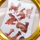 需自行裁切外型,輕柔地移除透明膜,此時轉印貼紙會連同透明膜一起被剝離起來,將其覆蓋在目標物上,用手(或是信用卡)將其推平後,慢慢地撕開透明膜即可。