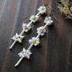 白色亮片花朵玻璃管珠长形垂坠长耳环 耳针 耳夹