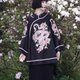 高比例真醋酸缎,232高克重,外观明亮,触摸柔滑舒适,光泽性能均接近桑蚕丝(但不霉不蛀),吸湿透气,不容易皱好打理。版型在清晚期女性镶边女袄(旗袍)形制的基础上进行了创新,插肩袖的采用减少了衣身和袖笼的容量,在保留外观的前提下让此款更适合日常活动。后隐形拉链的设计,方便穿脱。织带的工艺均为切割拼接(非贴车)裁片很多,裂做工艺复杂。竹型扣为定制干青真玉石扣。重工大面积刺绣,用了进口绣花线和机器,在走线设计上最大限度模拟手绣的质感,生动又美丽。刺绣图案为艺术家nunuyu原创山茶龙系列。