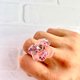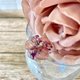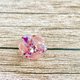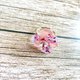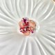 干花和银箔被包在一个透明的底座里,并与粉红色的底座结合。中间的水晶璧是一种帅气的淡玫瑰色。
