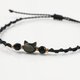 这是一款细致的编织手链,缀有可爱又别致的黑猫贝壳坠饰,搭配黑玛瑙宝石与金色珠饰。