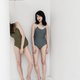Collection #1 : 性感甜美交叉露背直条连身泳装/灰-白