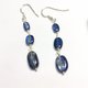 天然蓝晶石,三节式垂钓纯银手工耳环