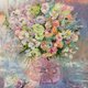 油画精致的花束玫瑰兰花现代执行在impasto技术40x40cm