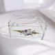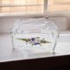- 将花朵以UV胶保护覆盖,透明、清新的典雅款式。 此为压克力方形沉盖式面纸盒,抽取后上盖会下沉。