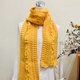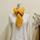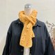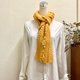 记得当时在编织这件作品时,自己也相当兴奋,感觉有趣,想要看它成品时的样子,当完成时,饱满的黄色当中印着金鱼图案,真的非常特别,真是一条与众不同的围巾哪😁