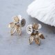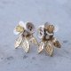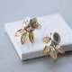 - ● 医疗级抗敏耳针、螺旋耳夹 ● 花片、水钻、镀14K金叶片 ● 耳环总长 3cm x 2cm