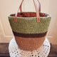 选用~ 台湾制造纸纤维钩织 底直径20cm×高24cm 厚衬里+牛皮提把 缝上作者亲签皮标