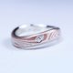 木目金,原是400年前日本刀剑工艺技术的一部分,经由不同金属交叠烧焊熔接,重复经过退火、锻造、扭曲、挫修、钻孔与辗压等步骤之后,使金属表层因色差与前述加工方式产生丰富的纹路变化,每一件的纹路都是独一无二,在日本以及欧美等地常被当作特殊的工艺藏品或是结婚戒指
