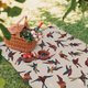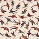 The design depicts a wide variety of birds flying in close proximity in bright colors.