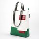 This tote bag collection once again re-introduces waste material in composition style and spray paint that is unique from wasted ink. The bag is molded with a liner that holds its shape. be neat
