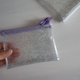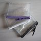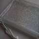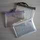 It is a clear pouch with glitter lame which looks rainbow color by the light.