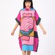 手绘棉人造丝衬衫式长袍连衣裙(均码)
