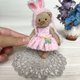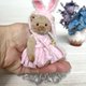 我为她缝制了一件柔软的粉红色棉质连身裙,上面装饰着蝴蝶吊坠,还编织了一顶粉红色兔子帽和一条花发带。