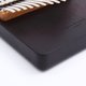 细腻的研磨使得原本冷酷的黑色增添了温润的质感,沉稳内敛的墨黑色让人着迷,加上雕刻了音符的高质感不锈钢琴键,是一把极有个性的高级板琴。