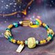 Bathed in the warmth of morning light, this bracelet harmonizes the clarity of rutilated quartz with the golden hue of yellow beryl. The addition of sculpted yellow glass and iridescent lampwork beads brings radiant energy, echoing the brightness and fluidity of sunlight in motion.