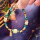 如晨曦洒落的阳光,这款作品融合晶莹通透的发晶与暖色调黄祖母,呈现明亮而平衡的能量流动。黄水方柱与琉璃珠则为整体增添立体光泽感,在每个转动之间,映照出如阳光折射般的层次与活力,展现自信且温柔的力量。