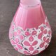 色彩设计上,我让粉红色从瓶口往底部展现浓淡渐变,底部的色泽更接近红色。底座部分则接合了扁平的透明玻璃以增加稳定度。
