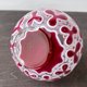 构造由三层玻璃叠加而成:最外层是透明的红粉色,紧接着是白色层,底部则为透明玻璃。制作过程中,我先在玻璃球表面根据花纹进行遮蔽喷砂雕刻,接着再次加热并吹制成型。由于粉红色层在加热过程中会些微收缩,底层的基础白色便会像勾边一样显露出来。花纹部分因色玻璃的厚度而带有立体的触感。