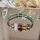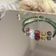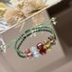 草绿色的编绳是花圈的绿意,红胶花与草莓晶像盛开的小果实,月光石是挂在枝叶间的温柔光点,黄水晶与茶晶则像一颗颗缤纷的金色小灯泡——整条手链不张扬,却让人一看到就忍不住微笑。