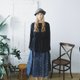 河流蜡染面料是fete经典的原创面料,手工蓝染制作,版型做成了长款伞裙,腰部松紧带收紧,裙身自然的向外微扩,除了直排纽扣外没有其他修饰,我们还是想以最直接的方式展示这个独特的面料。这条裙子很适合假日放松出游时穿着,还会留下植物染淡淡的香气,亚麻面料,中等厚薄,不透