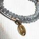 这款饰品使用了奇迹圣母堂 (Chapelle Notre-Dame de la Médaille Miraculeuse) 的圣牌,Pinkoi 的首次登场,首先推出独一无二的单品。这条二手古着项链是来自欧洲的朋友赠送的,上面的灰色天然石珠子是“烟水晶 (Cloudy Quartz)”,据说具有强大的疗愈意义。它能消除恐惧与不安,带来幸福,并能温和地抚平过去的创伤与不快的记忆。国内运送方面,预计可透过日本邮政 (平信) 以 140 至 180 日圆左右的价格寄送(确切价格需视数量而定,需临柜确认)。