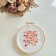 Embroidery Hoop 在国外是很受欢迎的一款家居装饰品。刺绣者将刺绣作品直接裱于绣框里作为挂墙或桌面装饰。作品可以订制,绣上自己喜欢的图案,名字,日期等等。一般客订作品有订婚礼物,结婚礼物,婴儿出生日,百日宴,毕业礼物,移民礼物等等。