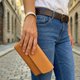 极简设计,采用义大利植鞣革,经精密刀模裁切,台湾手工制作。 时尚与功能兼具!这款多功能手机腰挂包提供了两个隔层和两个小夹层,让你可以同时携带最大 6.9吋手机或8.02吋书本型折叠手机、护照或纸币,以及存放 4 到 6 张卡片和硬币。 多功能手机腰挂包搭配随附2种宽版挂绳,提供腰挂、斜挂胸前和手持等多种背携方式,让你能随时随地解放双手,轻松携带手机。此外,背带挂绳还附带有扩充挂环,方便悬挂 AirPods 或证件套等小物品。无论外出、短途旅行、通勤或购物,都能随时解放双手,轻松携带手机,长时间佩戴无负担。