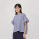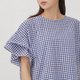 - - 基本舒適圓領 - 純棉經典格紋印花 - 落肩荷葉袖遮手臂 - 日系穿搭 - 台灣設計少量製造