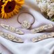 🌸朵朵白色山茶花盛开,配合裸粉底色和微小金萡装饰,散发着纯洁高雅的气息。为您的造型增添一份优雅气质。