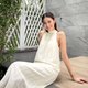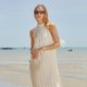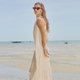 长洋装,细肩带设计,背后绑带蝴蝶结,飘逸的布料,简约条纹,奶油黄Butter Yellow 🧈 的色调,无论是搭船出游、漫步海滩、前往咖啡厅、参加婚礼或时髦派对,都能轻松驾驭 💛