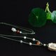 选择产自西伯利亚冻土层的猛犸象牙冰料牙心位置,干净完整,无斑无裂,手感油滑润泽,品质极佳。牙料为纯净奶白色,因材料为牙心位置,所以只在某些部位有浅淡的牙纹。手工雕刻猛犸象牙牙牌,一面为无相佛,一面为莲荷,两边雕刻花枝与荷叶,底部雕刻莲花座。小小一枚雕刻件上细节精致,雕刻精细:佛头上的旋纹,莲花重瓣的层叠,荷叶的卷舒皆是精巧细致,手指,浪卷皆是细节满满。搭配天然猛犸象牙小圆珠,南红小花做链首,猛犸象牙圆珠,蝶贝圆珠做链身,蝶贝圆珠,蝶贝铃兰花,南红冰红小圆珠做链尾,手工编绳制作。清致典雅,素净别致,寓意美好。