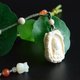 此吊坠一面为无相佛一面为莲荷,其余几面除吊坠孔位置外皆有满雕。精工雕刻的天然猛犸象牙冰料精雕无相佛(莲荷)吊坠牌。牙心位置,色泽奶白,雕刻精细精工细作,小巧精致,手感温润。