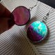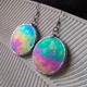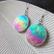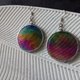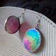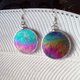 Iridescent stained glass earrings with round circle shape (made of glass, copper/tin). Tiffany technique.