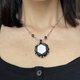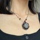 - 玻璃米珠x天然石 双面设计 银曜石 六角形 串珠吊坠 配宝石链