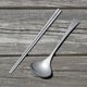 因纯钛餐具无添加涂层,使用时易留下指纹及水渍,以清水搭配软质海绵洗净后马上擦干即可清除。