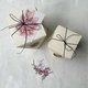 我会因松果花器大小不同而量身定做纸盒,再用黑色细绳和小妖精蜡印装饰(蜡印颜色随机)。
