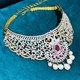 整体以合金镀金为基底,密镶cz钻与玻璃宝石,光芒层层绽放;串连的淡水珍珠点缀出温润气息,散发出贵族般的典雅与气度。精致雕花中藏有象征永恒之爱的比翼鸟,是婚礼珠宝中的绝美寓意选择,为人生中最重要的时刻增添动人祝福;更是一件值得珍藏一生、传承给下一代的永恒珍品 — 不只是装饰,而是一段爱情的颂歌、一件代代珍藏的传家宝——让这款颈链成为你故事中最闪耀的篇章。