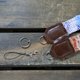 - A handmade one-of-a-kind hand strap wrapped with various yarns.