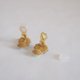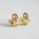 Dimension of the motif: approx. 20 mm x 15 mm (at the widest point) Materials: Swarovski bijoux, beads, spangles, faux suede, titanium post (stud earrings), Gold-plated (clip on earrings) Earrings, luminous green-colored Swarovski bijoux matched with flower-shaped spangles. Flower-shaped spangles are approximately 5 mm in diameter. 3 different colors are matched up to make a tiny bouquet. Micro-sized gold beads embroidered around the Swarovski.