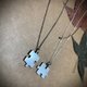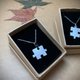 切锯好拼图的银片上,敲上星座、图案亦或字母,硫化消光后作品真好看,两片拼在一起也好看。(一片$1200元)