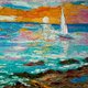 - Original author's oil painting. Sunset, seascape, white sail. Size: 24x18 cm Materials: oil paints, canvas panel, palette knife. Original art. 100% hand painted impasto oil painting one of a kind by Tany Sopikova.