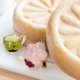 粉红最中饼:搭配绿茶(内带烘干茶叶片)