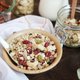 成分:燕麦片、腰果、胡桃、核桃、杏仁、椰丝、糙米脆片、蔓越莓干、蓝莓干、葡萄干、蜂蜜、焦糖