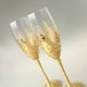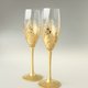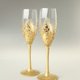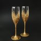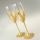 Set of 2 champagne glasses, hand-painted and decorated with crystal rhiestones. Dold plating imitation, distress effect. Very attractive and goldy. One of a kind champagne glasses, READY to SHIP!