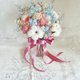 以洁白棉花为主...搭配粉&蓝浪漫风格新娘捧花