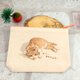 以180度C半手工式浅色热转印将图案转印上去,双面不同图