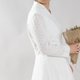 - Linen wedding dress with 100% pure linen. I, CEO Watanuki, decided to make it for my wife who has been waiting for our wedding party since we got married. The design was inspired from court dress (robe montante) and tried to focus on "modesty" instead of showing their skins because we think it's the most elegant way of wearing dresses.